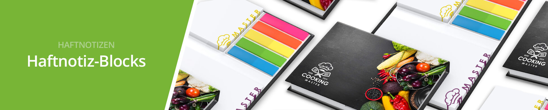 Format: 10,5 x 7,8 cm Umfang: Kombi-Set mit Haftnotiz-Blocks und Marker-Set. Mit 50 Blatt Haftpapier in weiß, in den Maßen 5 x 7,2 cm und Filmmarker Set bestehend aus 5 x 20 Filmmarker aus transparenter, farbiger Folie. Werbeeindruck inklusive: Bookcover gloss-individuell, 4C-Qauality auf Haftnotizen und Umschlag Verpackungseinheit: 162 Stück